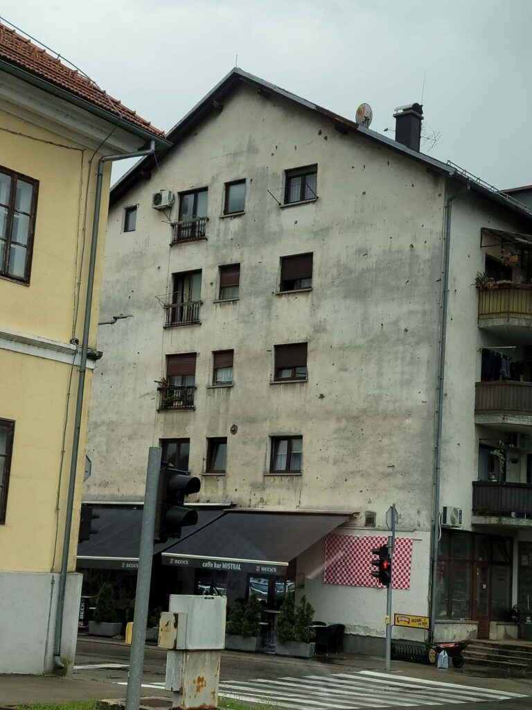 After lunch we descended once again to the seashore. Along the way we saw lots of small towns that have still not recovered from the war – deserted homes, buildings with bullet holes, monuments to the dead. The wars here have taken a huge toll & still color the local attitudes. Our national park guide, Antonella, told us how her dad had to fight in the war, her mom moved away, & they were luckily reunited after. Seeing & hearing the impact was very sobering.